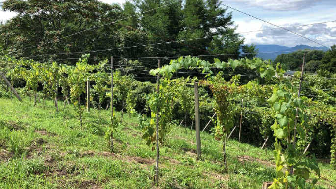 2016年に東御市へ移住。なるべく自然な造りを心掛け、混醸してやさしいナチュラルなワイン作りを目指しています。ワインブドウのほか、リンゴや生食ブドウ、米なども栽培していますブドウ栽培は硫黄系合剤を芽吹き前にごく少量と適正なボルドー液のみの有機栽培。醸造は自然酵母・無清澄・無濾過・SO2無添加で行っています。娘さんが手がける個性的なカリグラフィーとイラストのラベルが印象的。